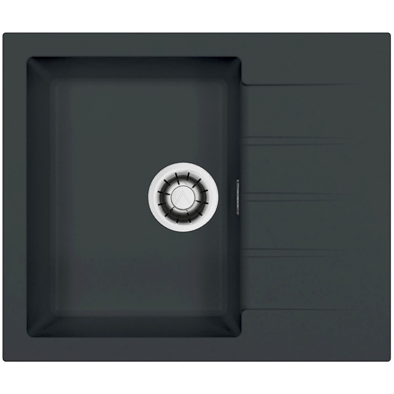 Granitový dřez s odkapem, provedení Deep Black A90, otočný, rozměr 590 x 500 mm, vana 325 x 425 x 200 mm, horní montáž, minimálně 45 cm skříňka.