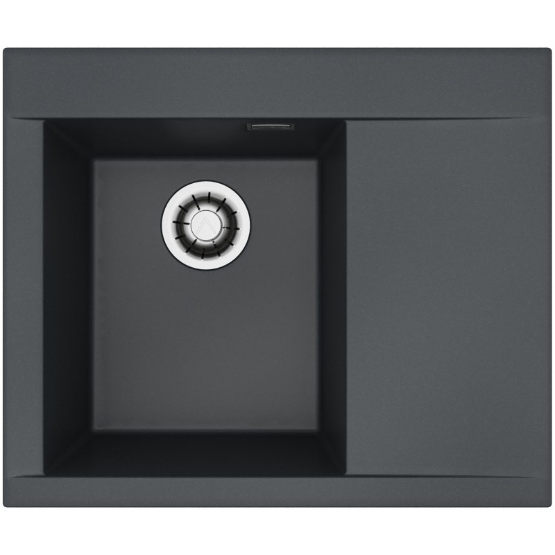 Granitový dřez s odkapem, provedení Deep Black A90, levý, rozměr 615 x 515 mm, vana 340 x 400 x 198 mm, horní montáž, minimálně 45 cm skříňka.