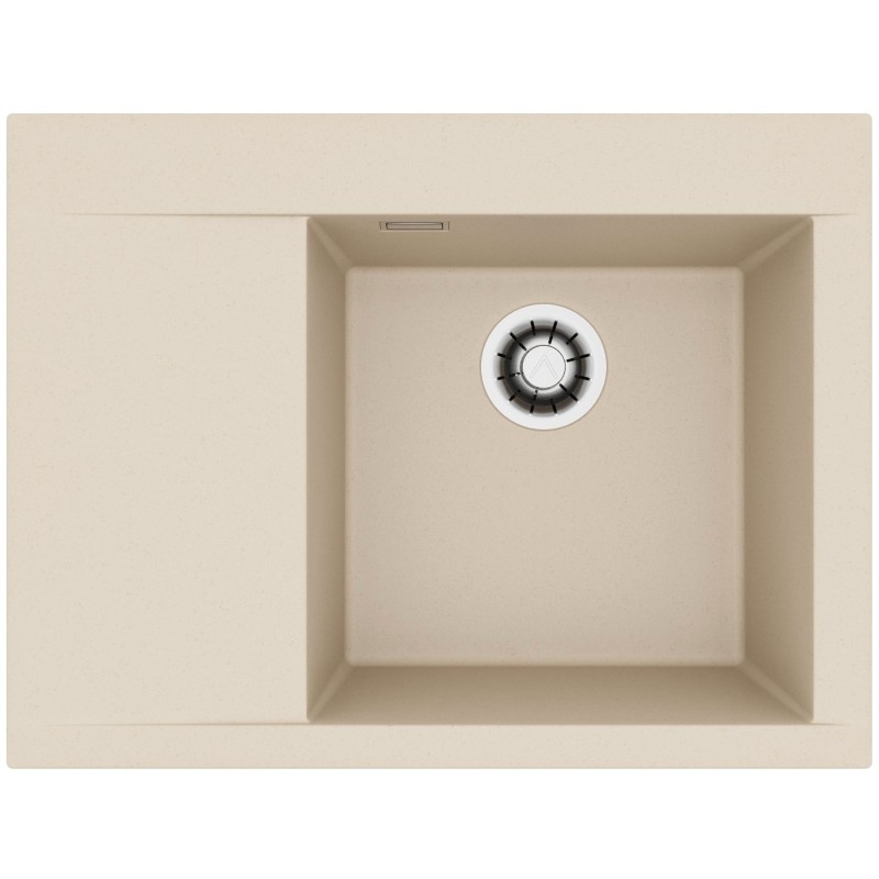 Granitový dřez s odkapem, provedení Ivory A20, pravý, rozměr 680 x 515 mm, vana 400 x 400 x 198 mm, horní montáž, minimálně 50 cm skříňka.