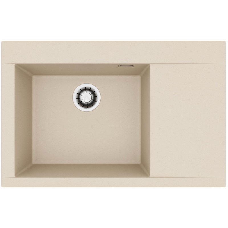 Granitový dřez s odkapem, provedení Ivory A20, levý, rozměr 790 x 515 mm, vana 480 x 400 x 198 mm, horní montáž, minimálně 60 cm skříňka.