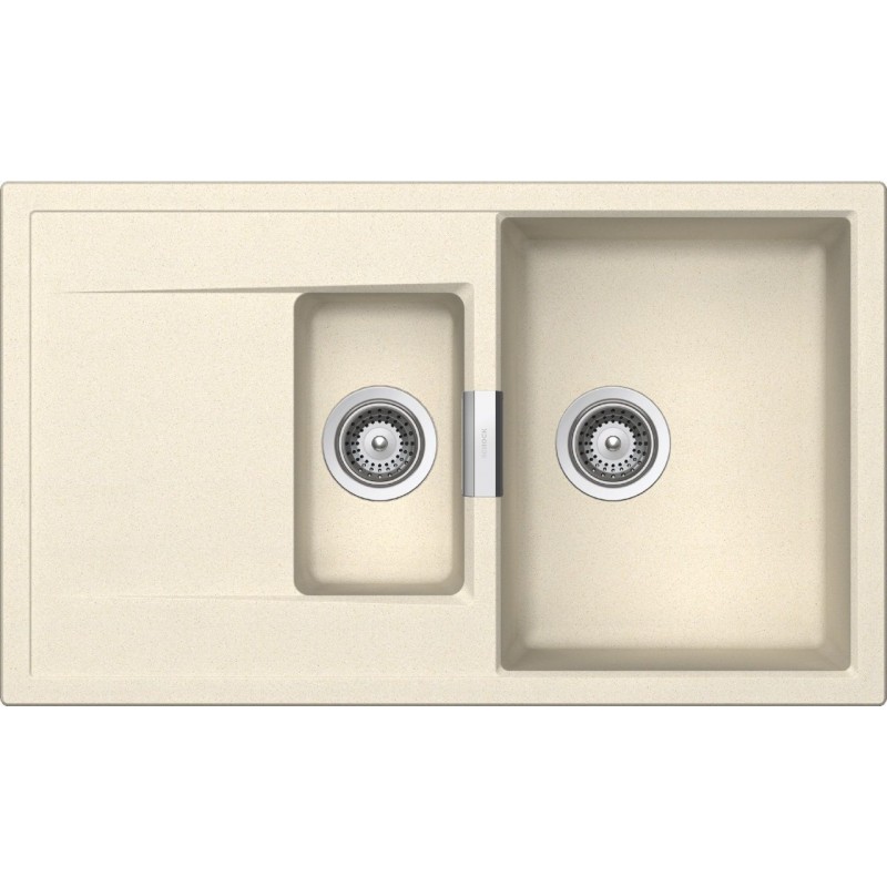 Granitový dřez s vaničkou a odkapem, provedení Magnolia, otočný, rozměr 860 x 510 mm, vana 339 x 440 x 200 mm a 165 x 294 x 120 mm, spodní montáž, minimálně 60 cm skříňka, s excentrem.