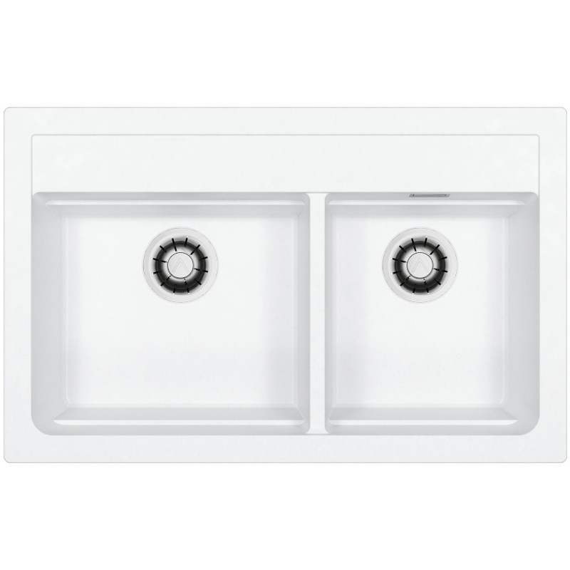 Granitový dvojdřez, provedení Glacier A10, rozměr 790 x 500 mm, vana 390 x 340 x 195 mm a 300 x 340 x 195 mm, horní nebo spodní montáž, minimálně 80 cm skříňka, s excentrem, 1 otvor z výroby.
