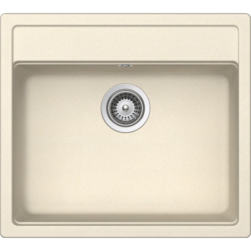 Hranatý granitový jednodřez, provedení Magnolia, rozměr 570 x 510 mm, vana 514 x 358 x 180 mm, horní montáž, minimálně 60 cm skříňka, s excentrem.