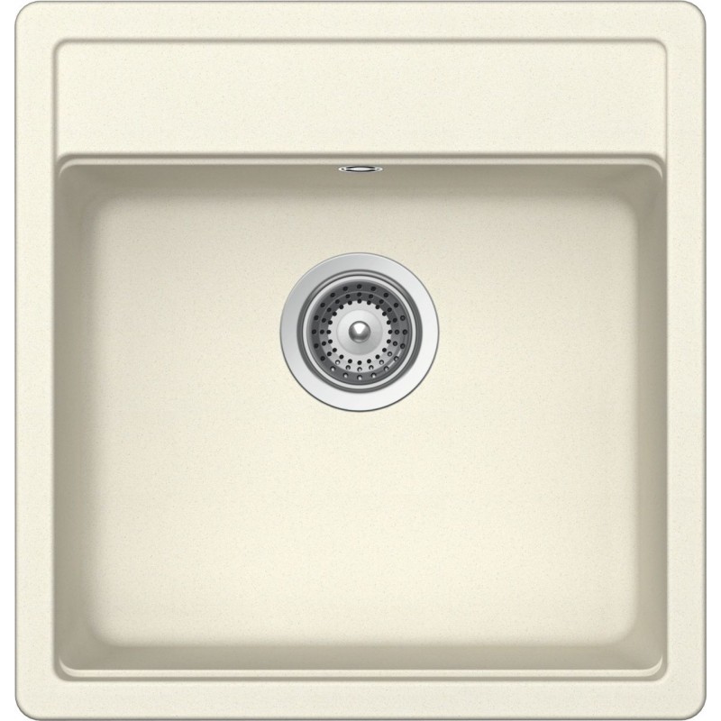Hranatý granitový jednodřez, provedení Magnolia, rozměr 490 x 510 mm, vana 434 x 364 x 180 mm, horní montáž, minimálně 50 cm skříňka, s excentrem.