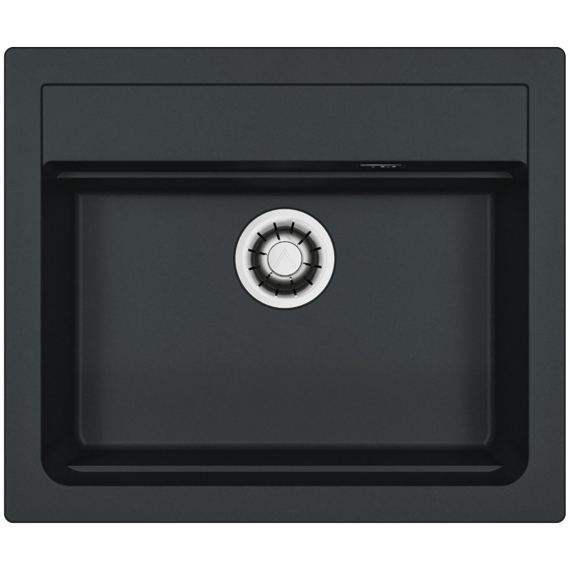 Hranatý granitový jednodřez, provedení Deep Black A90, rozměr 590 x 500 mm, vana 510 x 340 x 195 mm, horní nebo spodní montáž, minimálně 60 cm skříňka.