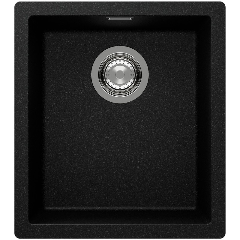 Hranatý granitový jednodřez, provedení Magma, rozměr 406 x 456 mm, vana 350 x 400 x 200 mm, horní montáž, minimálně 45 cm skříňka, s excentrem.