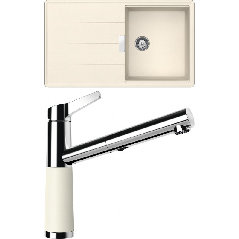 Cenově zvýhodněný set dřezu a baterie Schock S16-5 - obsahuje granitový dřez s odkapem Tia D-100 Magnolia a baterii se sprchou SC-510.120 Magnolia.
