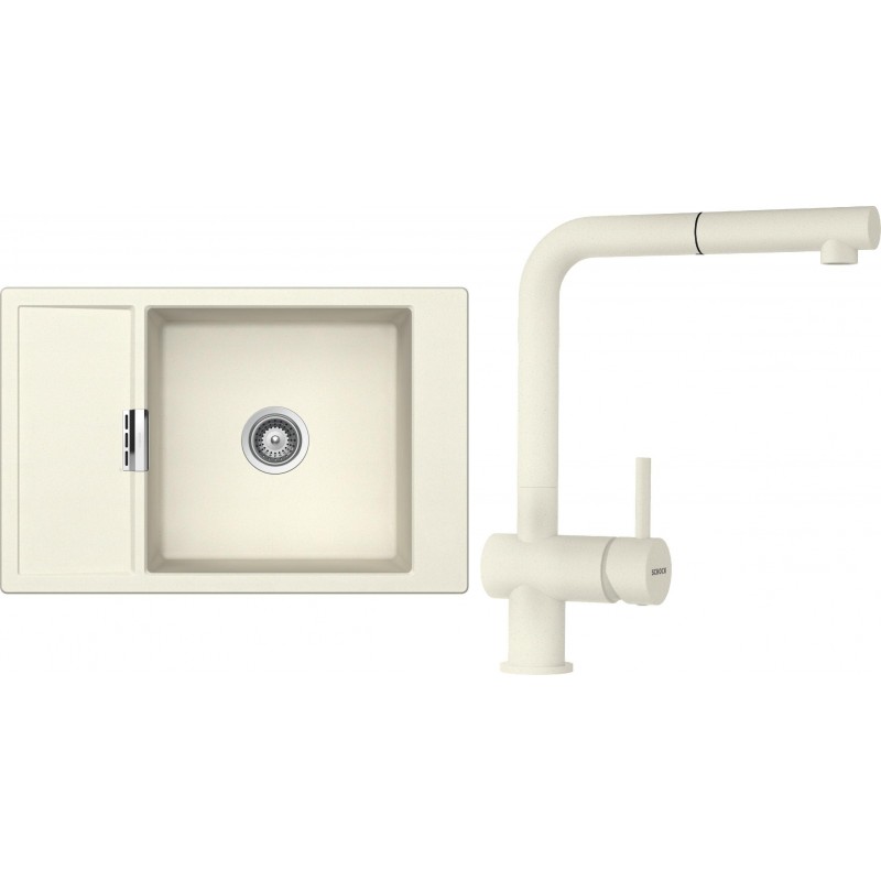Cenově zvýhodněný set dřezu a baterie Schock S4-2 - obsahuje granitový dřez s odkapem Mono D-100XS Magnolia a baterii s vytahovací koncovkou Epos.120 Magnolia.