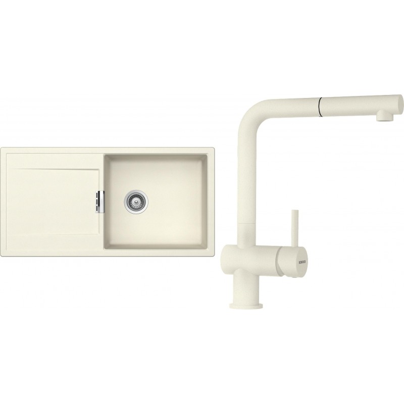 Cenově zvýhodněný set dřezu a baterie Schock S8-2 - obsahuje granitový dřez s odkapem Mono D-100L Magnolia a baterii s vytahovací koncovkou Epos.120 Magnolia.