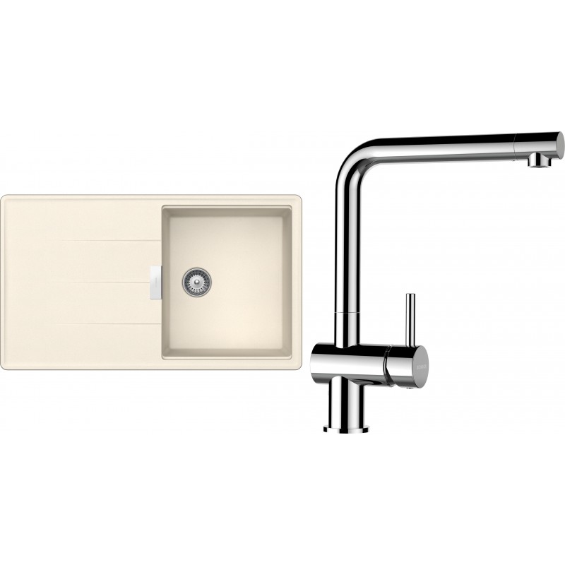 Cenově zvýhodněný set dřezu a baterie Schock S16-12 - obsahuje granitový dřez s odkapem Tia D-100 Magnolia a baterii Epos Chrom.