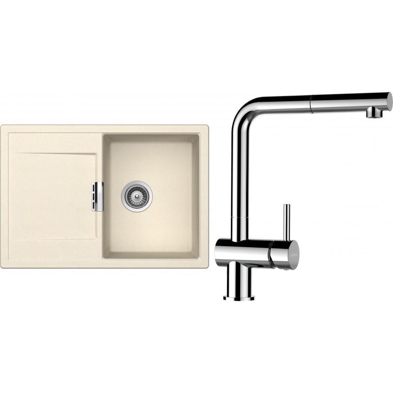 Cenově zvýhodněný set dřezu a baterie Schock S5-13 - obsahuje granitový dřez s odkapem Mono D-100S Magnolia a baterii s vytahovací koncovkou Epos.120 Chrom.