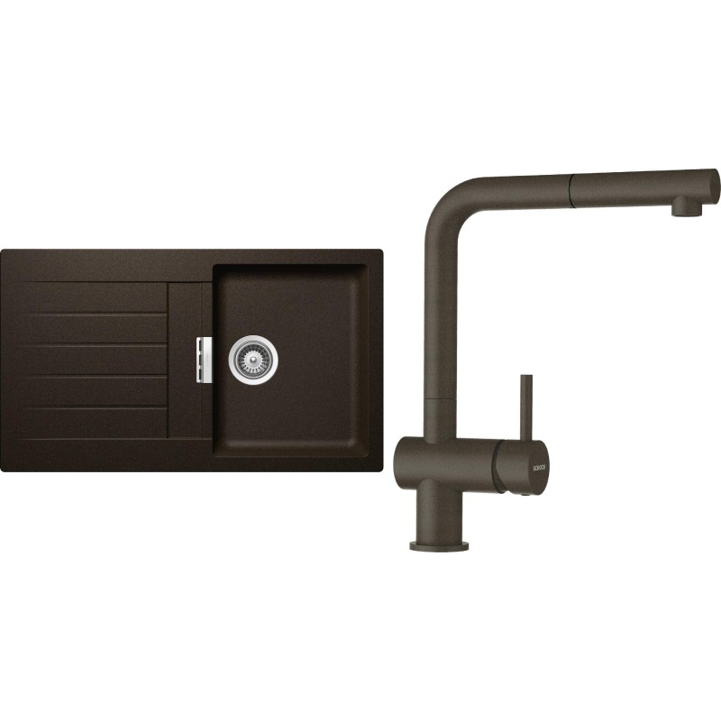 Cenově zvýhodněný set dřezu a baterie Schock S1-2 - obsahuje granitový dřez s odkapem Signus D-100 Bronze a baterii s vytahovací koncovkou Epos.120 Bronze.