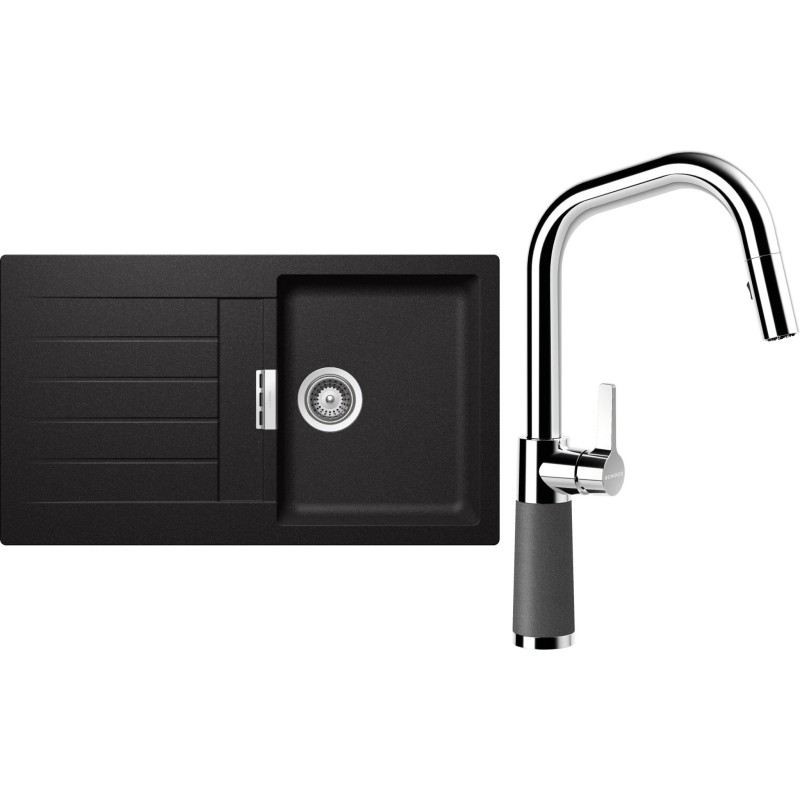 Cenově zvýhodněný set dřezu a baterie Schock S1-9 - obsahuje granitový dřez s odkapem Signus D-100 Stone a baterii se sprchou SC-530.120 Stone.