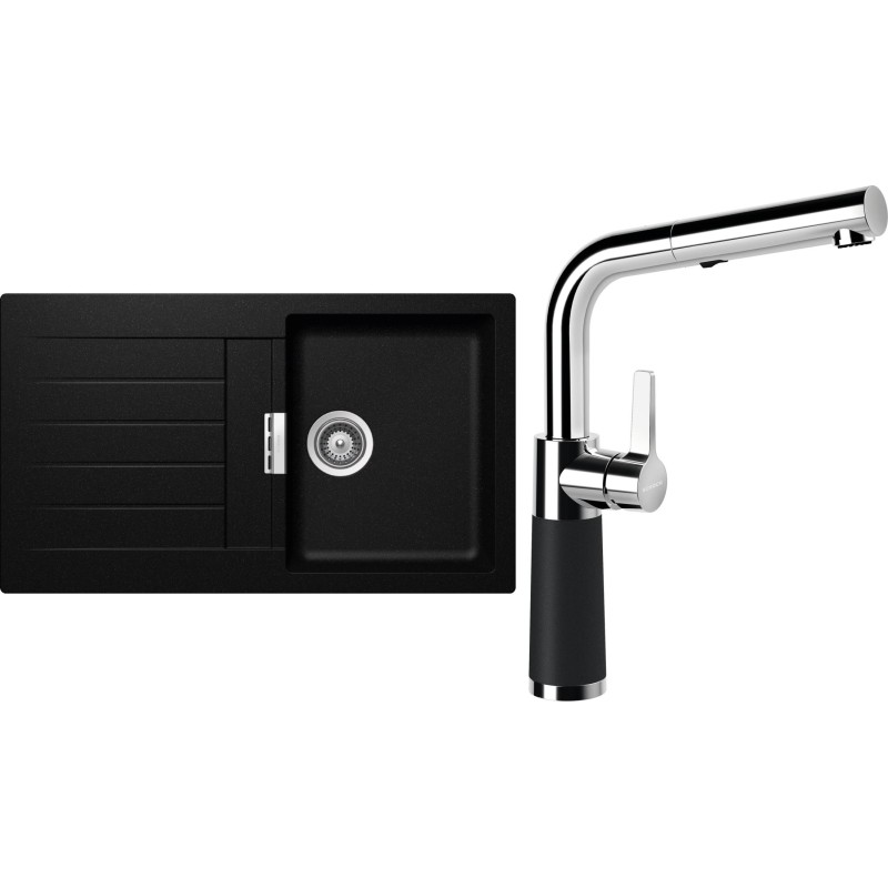 Cenově zvýhodněný set dřezu a baterie Schock S1-11 - obsahuje granitový dřez s odkapem Signus D-100 Magma a baterii se sprchou SC-540.120 Magma.