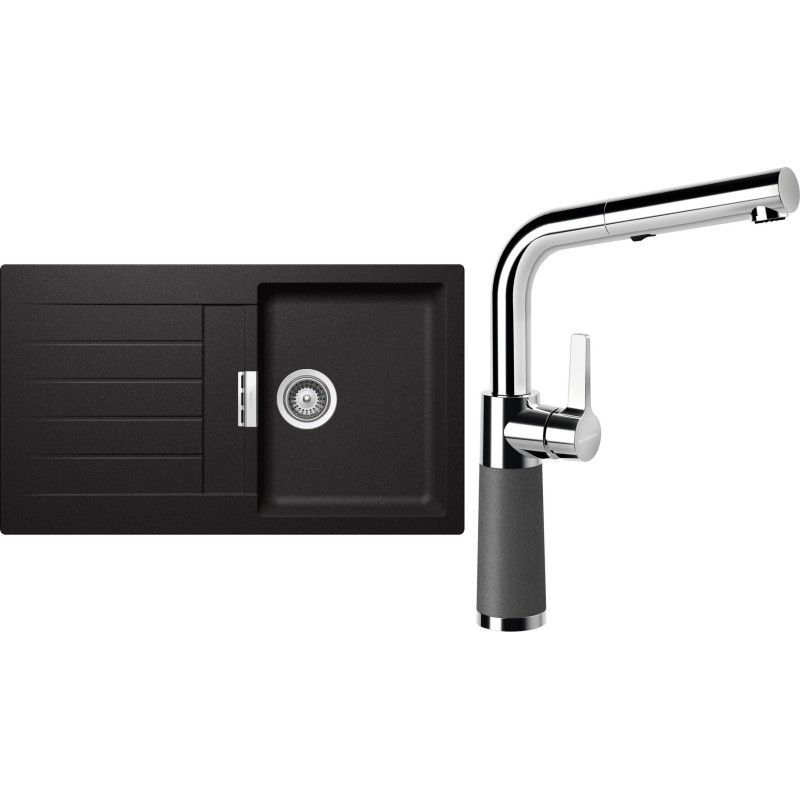 Cenově zvýhodněný set dřezu a baterie Schock S1-11 - obsahuje granitový dřez s odkapem Signus D-100 Stone a baterii se sprchou SC-540.120 Stone.