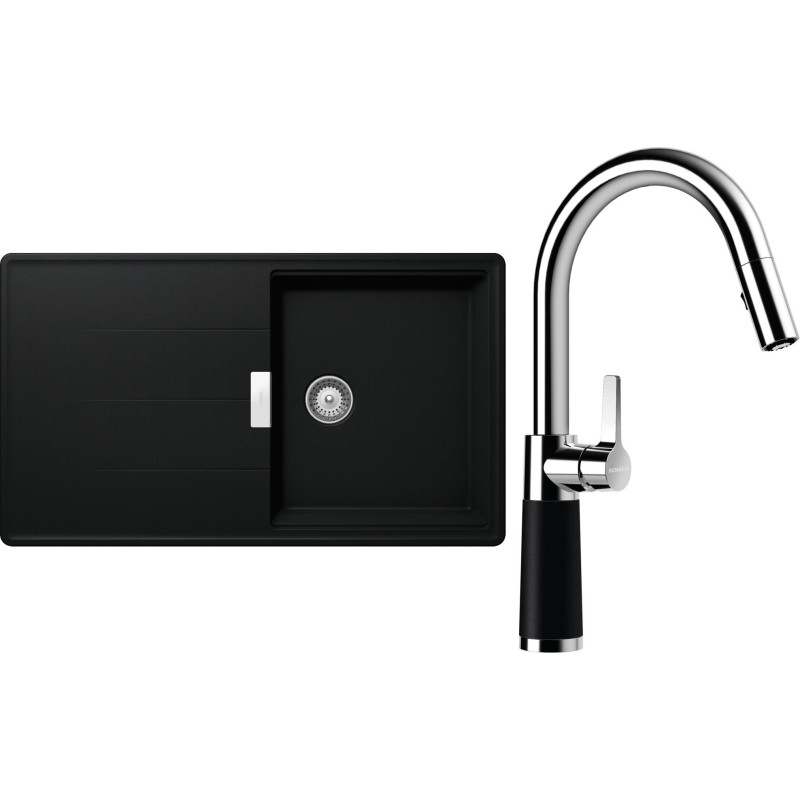 Cenově zvýhodněný set dřezu a baterie Schock S16-7 - obsahuje granitový dřez s odkapem Tia D-100 Puro a baterii se sprchou SC-520.120 Puro.