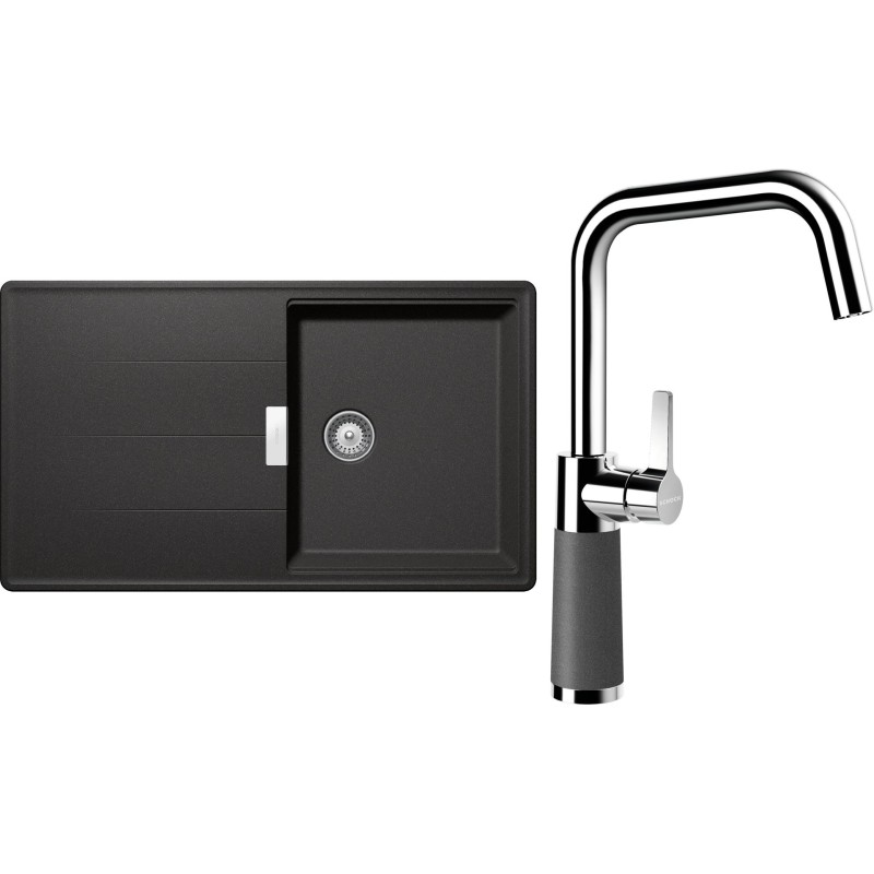 Cenově zvýhodněný set dřezu a baterie Schock S16-8 - obsahuje granitový dřez s odkapem Tia D-100 Stone a baterii SC-530 Stone.