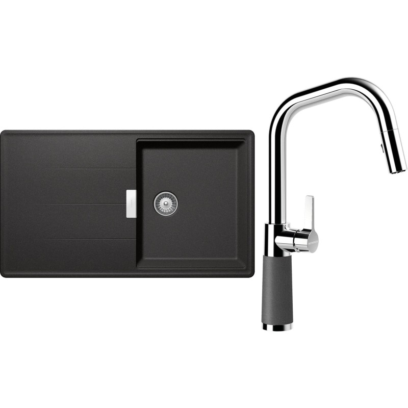 Cenově zvýhodněný set dřezu a baterie Schock S16-9 - obsahuje granitový dřez s odkapem Tia D-100 Stone a baterii se sprchou SC-530.120 Stone.