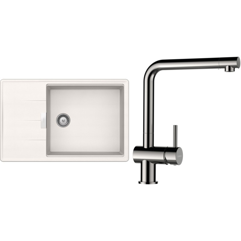 Cenově zvýhodněný set dřezu a baterie Schock S17-3 - obsahuje granitový dřez s odkapem Tia D-100LS Polaris a baterii Epos Nerezový vzhled.