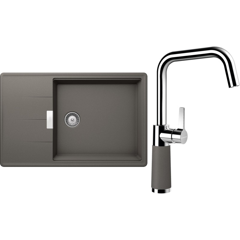 Cenově zvýhodněný set dřezu a baterie Schock S17-8 - obsahuje granitový dřez s odkapem Tia D-100LS Silverstone a baterii SC-530 Silverstone.