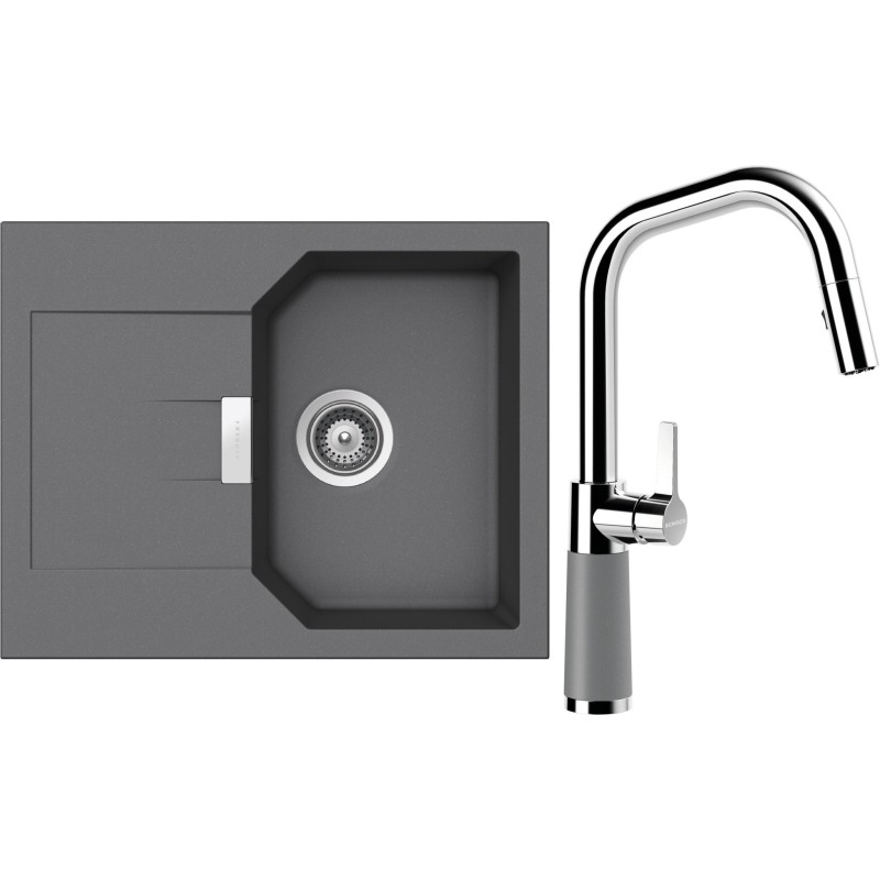 Cenově zvýhodněný set dřezu a baterie Schock S18-11 - obsahuje granitový dřez s odkapem Manhattan D-100XS Croma a baterii se sprchou SC-530.120 Croma.