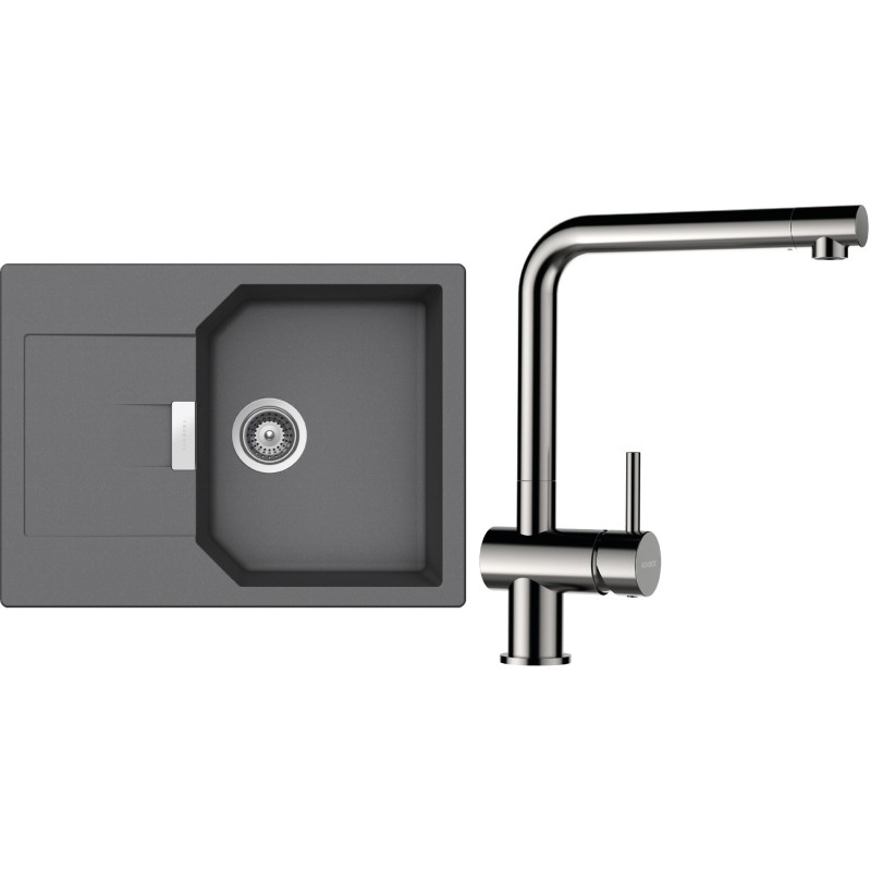 Cenově zvýhodněný set dřezu a baterie Schock S19-5 - obsahuje granitový dřez s odkapem Manhattan D-100S Croma a baterii Epos Nerezový vzhled.