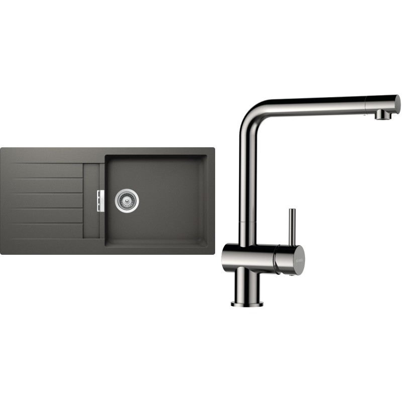 Cenově zvýhodněný set dřezu a baterie Schock S2-3 - obsahuje granitový dřez s odkapem Signus D-100L Silverstone a baterii Epos Nerezový vzhled.