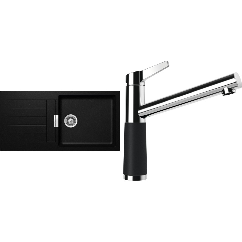 Cenově zvýhodněný set dřezu a baterie Schock S2-4 - obsahuje granitový dřez s odkapem Signus D-100L Magma a baterii SC-510 Magma.