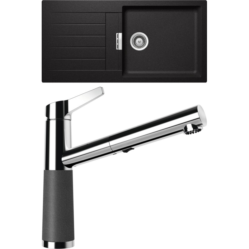 Cenově zvýhodněný set dřezu a baterie Schock S2-5 - obsahuje granitový dřez s odkapem Signus D-100L Stone a baterii se sprchou SC-510.120 Stone.
