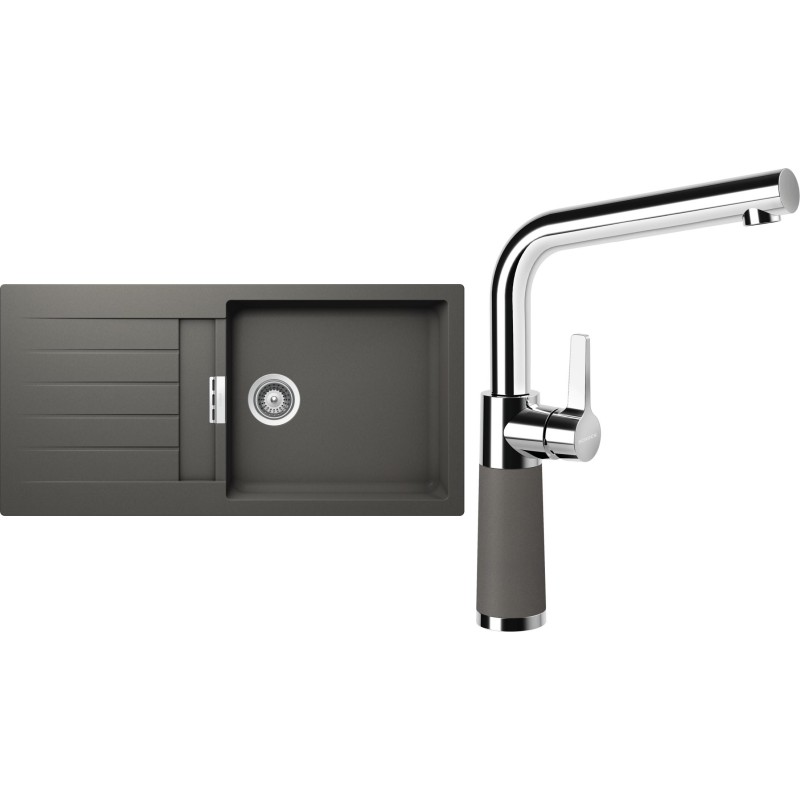 Cenově zvýhodněný set dřezu a baterie Schock S2-10 - obsahuje granitový dřez s odkapem Signus D-100L Silverstone a baterii SC-540 Silverstone.