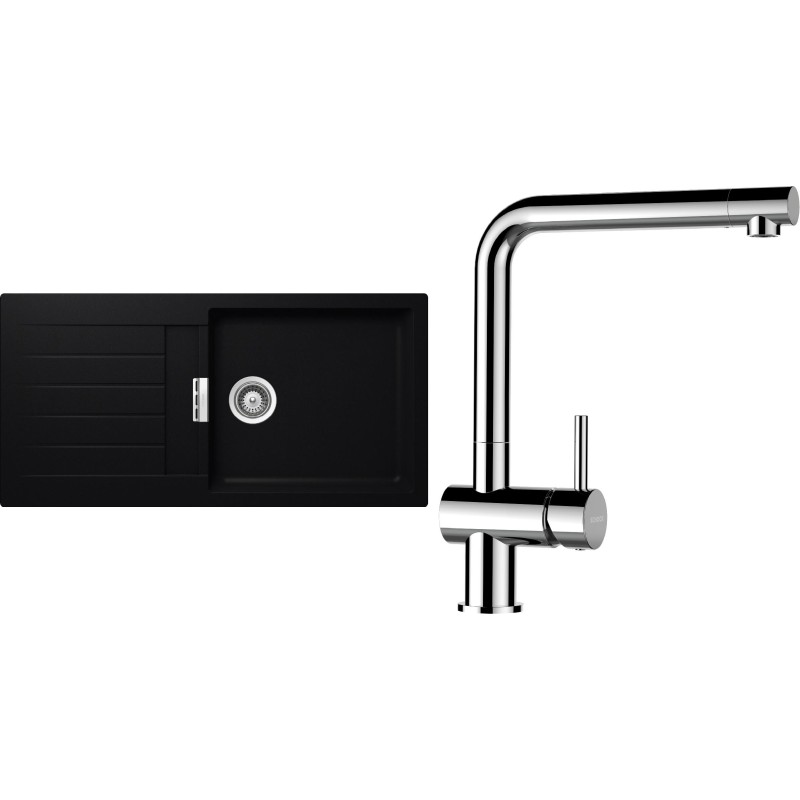 Cenově zvýhodněný set dřezu a baterie Schock S2-12 - obsahuje granitový dřez s odkapem Signus D-100L Puro a baterii Epos Chrom.