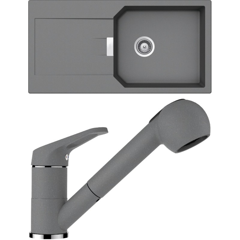 Cenově zvýhodněný set dřezu a baterie Schock S21-2 - obsahuje granitový dřez s odkapem Manhattan D-100L Croma a baterii se sprchou Cosmo.120 Croma.