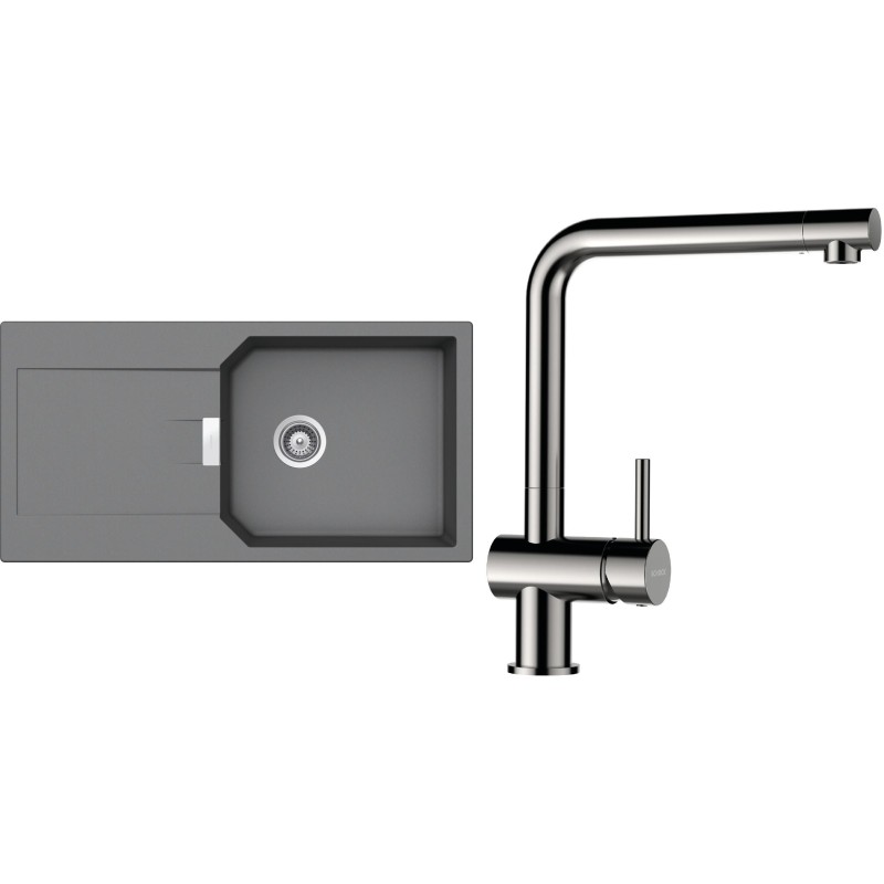 Cenově zvýhodněný set dřezu a baterie Schock S21-5 - obsahuje granitový dřez s odkapem Manhattan D-100L Croma a baterii Epos Nerezový vzhled.