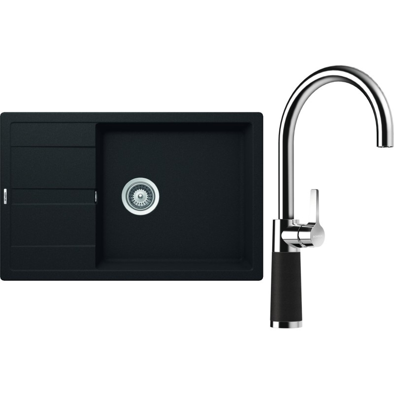 Cenově zvýhodněný set dřezu a baterie Schock S22-8 - obsahuje granitový dřez s odkapem Manhattan D-100LS Onyx a baterii SC-520 Onyx.