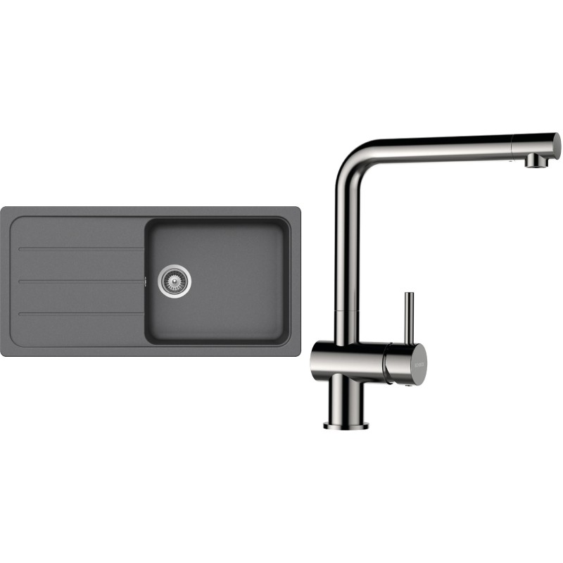 Cenově zvýhodněný set dřezu a baterie Schock S26-5 - obsahuje granitový dřez s odkapem Formhaus D-100L Croma a baterii Epos Nerezový vzhled.