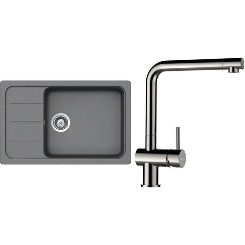 Cenově zvýhodněný set dřezu a baterie Schock S27-5 - obsahuje granitový dřez s odkapem Formhaus D-100LS Croma a baterii Epos Nerezový vzhled.