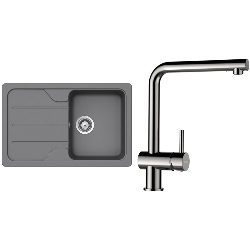Cenově zvýhodněný set dřezu a baterie Schock S28-5 - obsahuje granitový dřez s odkapem Formhaus D-100S Croma a baterii Epos Nerezový vzhled.