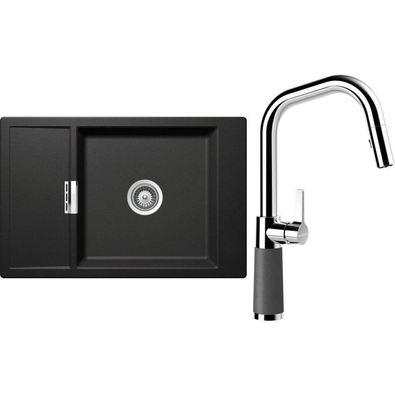 Cenově zvýhodněný set dřezu a baterie Schock S4-9 - obsahuje granitový dřez s odkapem Mono D-100XS Stone a baterii se sprchou SC-530.120 Stone.