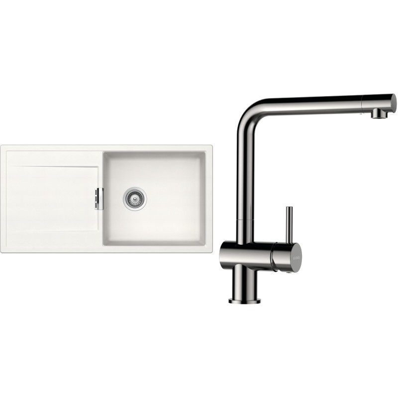 Cenově zvýhodněný set dřezu a baterie Schock S8-3 - obsahuje granitový dřez s odkapem Mono D-100L Polaris a baterii Epos Nerezový vzhled.
