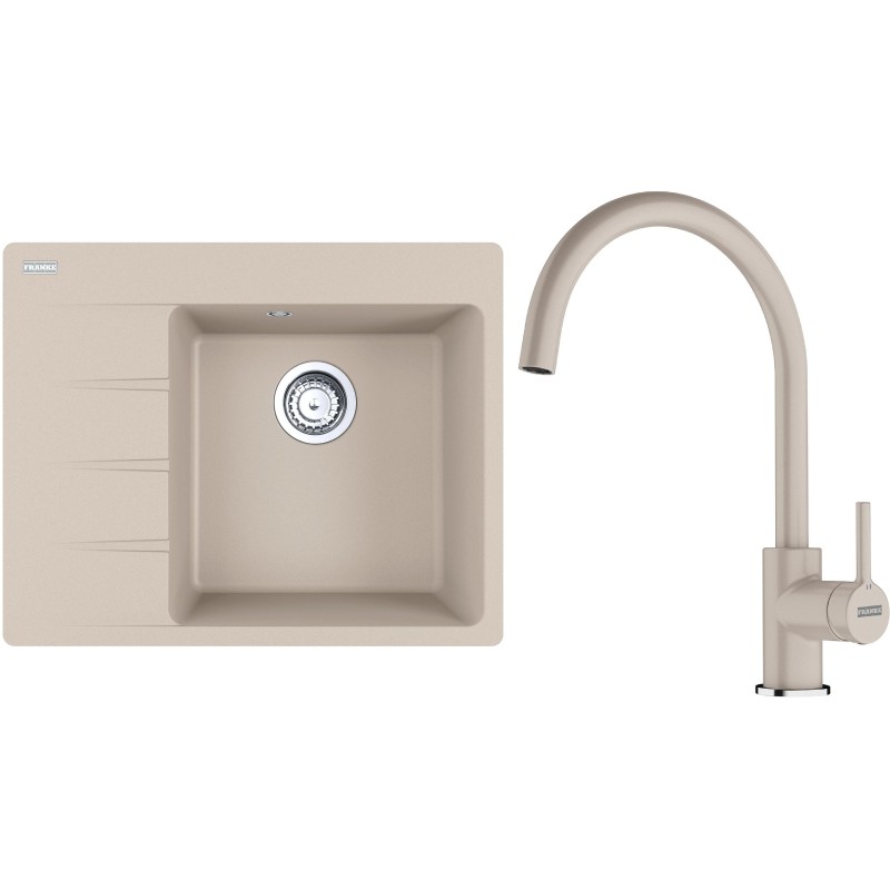 Cenově zvýhodněný set Franke G269SA obsahuje granitový dřez s odkapem CNG 611-62 TL/7 Sahara a baterii FC 6018.082 LINA Sahara.