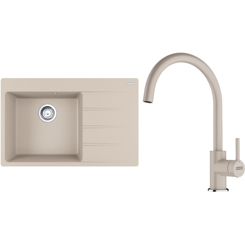 Cenově zvýhodněný set Franke G272SA obsahuje granitový dřez s odkapem CNG 611-78 TL/2 Sahara a baterii FC 6018.082 LINA Sahara.