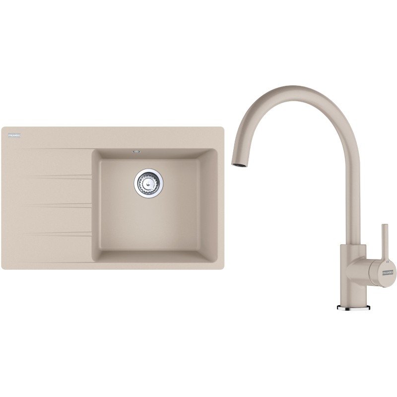 Cenově zvýhodněný set Franke G271SA obsahuje granitový dřez s odkapem CNG 611-78 TL/7 Sahara a baterii FC 6018.082 LINA Sahara.