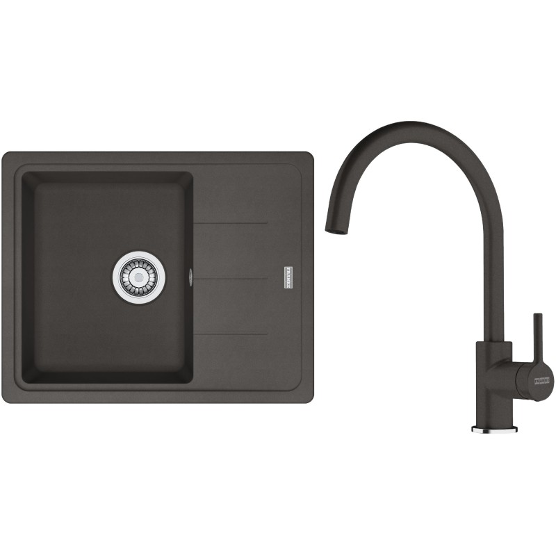 Cenově zvýhodněný set Franke G278ŠB obsahuje granitový dřez s odkapem BFG 611-62 Šedá břidlice a baterii FC 6018.088 LINA Šedá břidlice.