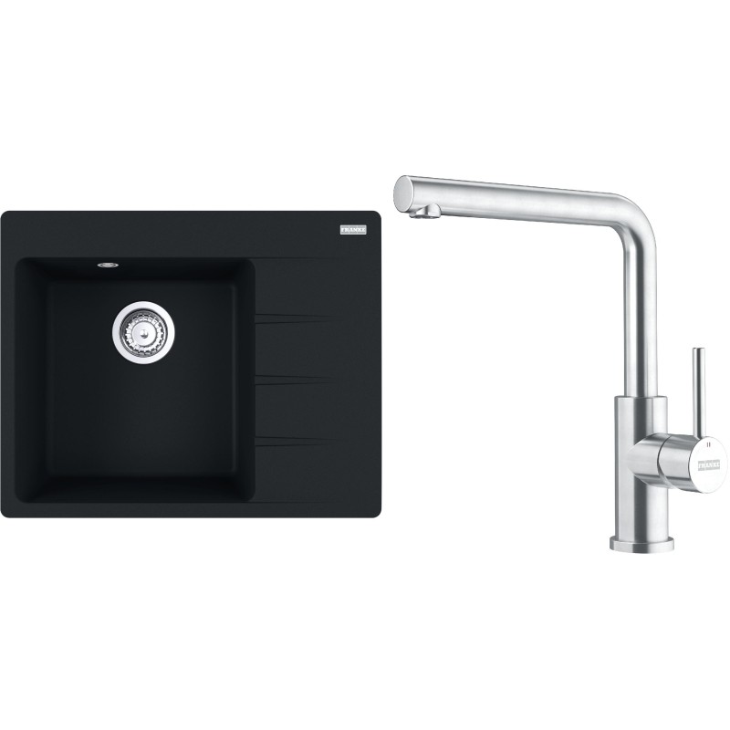 Cenově zvýhodněný set Franke G282MČ obsahuje granitový dřez s odkapem CNG 611-62 TL/2 Matná černá a baterii FC 6985.501 SMART GLENDA Celonerez.