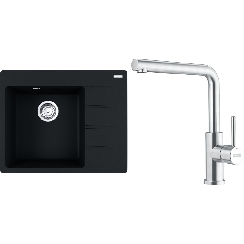 Cenově zvýhodněný set Franke G282O obsahuje granitový dřez s odkapem CNG 611-62 TL/2 Onyx a baterii FC 6985.501 SMART GLENDA Celonerez.