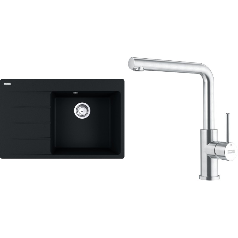 Cenově zvýhodněný set Franke G287O obsahuje granitový dřez s odkapem CNG 611-78 TL/7 Onyx a baterii FC 6985.501 SMART GLENDA Celonerez.