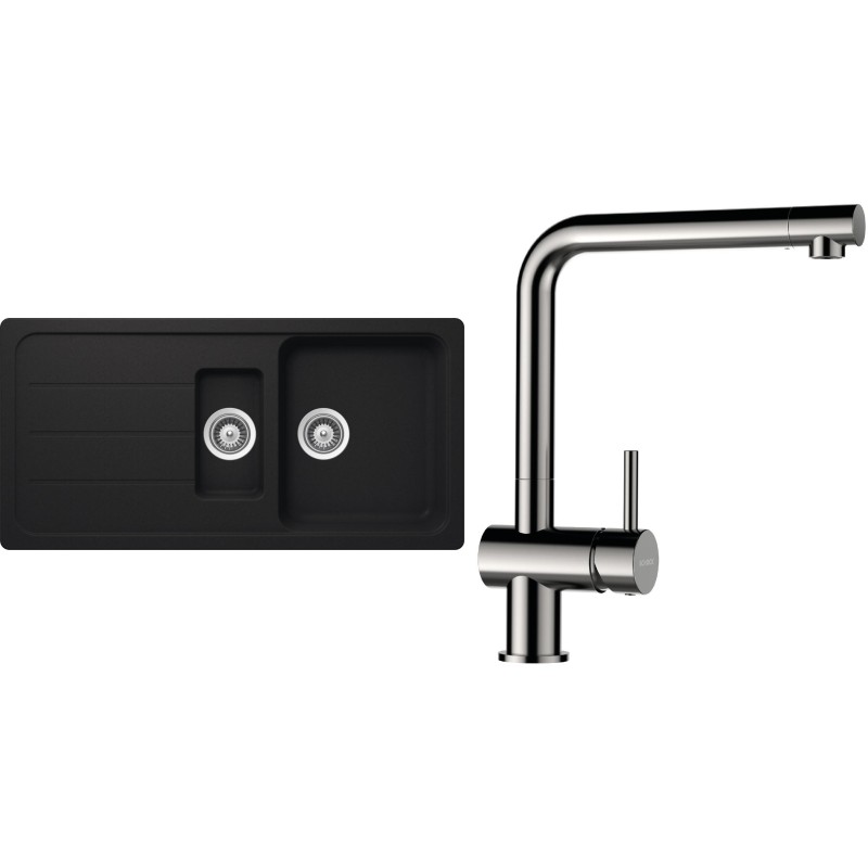 Cenově zvýhodněný set dřezu a baterie Schock S29-5 - obsahuje granitový dřez s vaničkou a odkapem Formhaus D-150L Onyx a baterii Epos Nerezový vzhled.