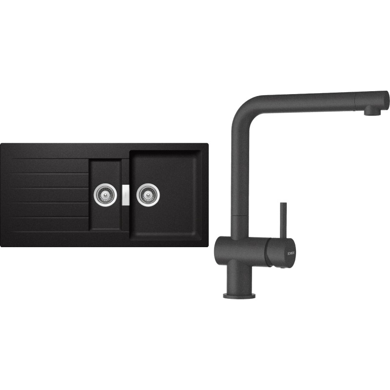 Cenově zvýhodněný set dřezu a baterie Schock S3-1 - obsahuje granitový dřez s vaničkou a odkapem Signus D-150 Stone a baterii Epos Stone.
