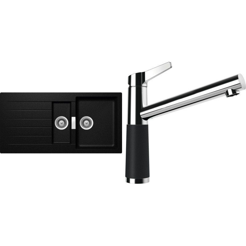 Cenově zvýhodněný set dřezu a baterie Schock S3-4 - obsahuje granitový dřez s vaničkou a odkapem Signus D-150 Magma a baterii SC-510 Magma.