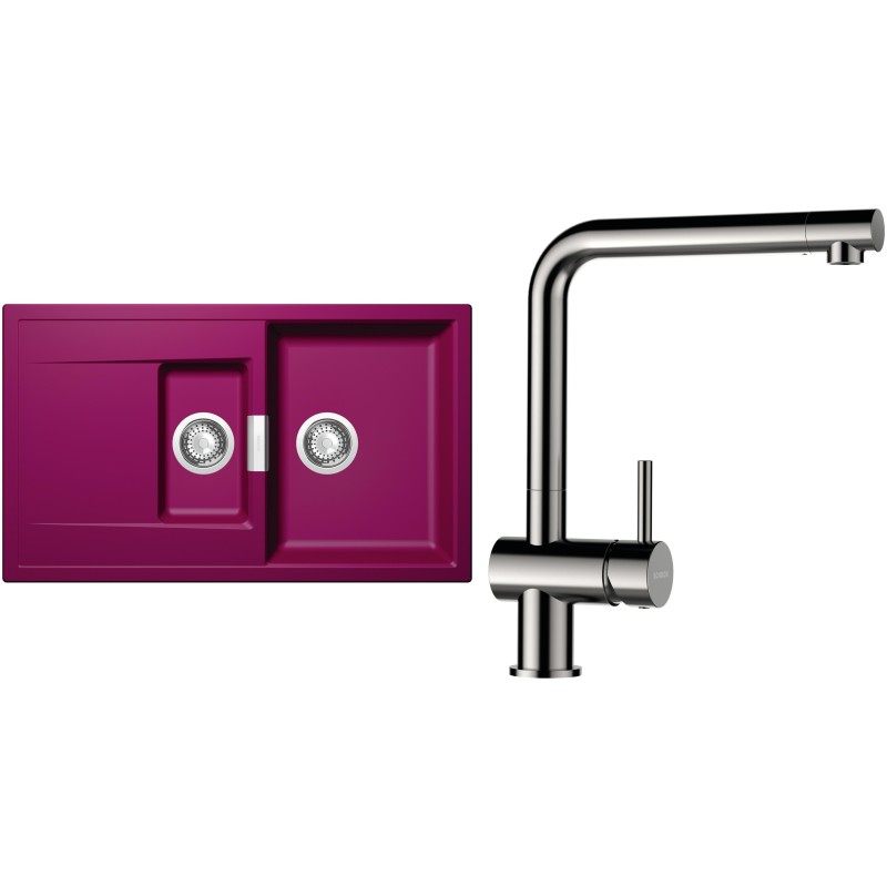 Cenově zvýhodněný set dřezu a baterie Schock S7-3 - obsahuje granitový dřez s vaničkou a odkapem Mono D-150 Berry a baterii Epos Nerezový vzhled.